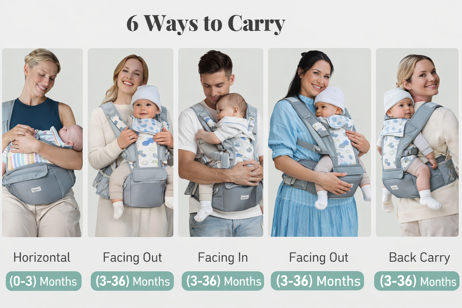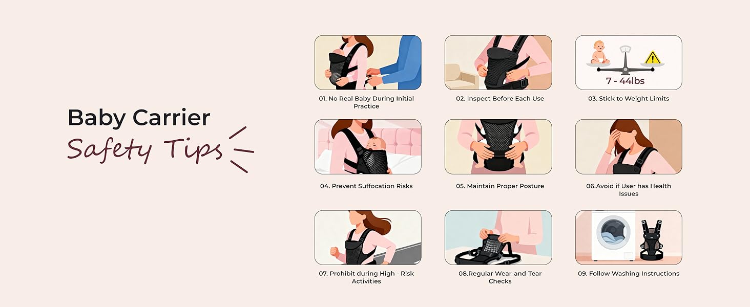 ✔️ Suitable for babies from newborn to 15 months (7-45 lbs, over 20 inches) with a comfortable seat width of 10.63–12.99 inches (27–33 cm). Parents sized XS to XXL (59–79 inches tall) can enjoy a perfect fit, ensuring comfort and support for all.