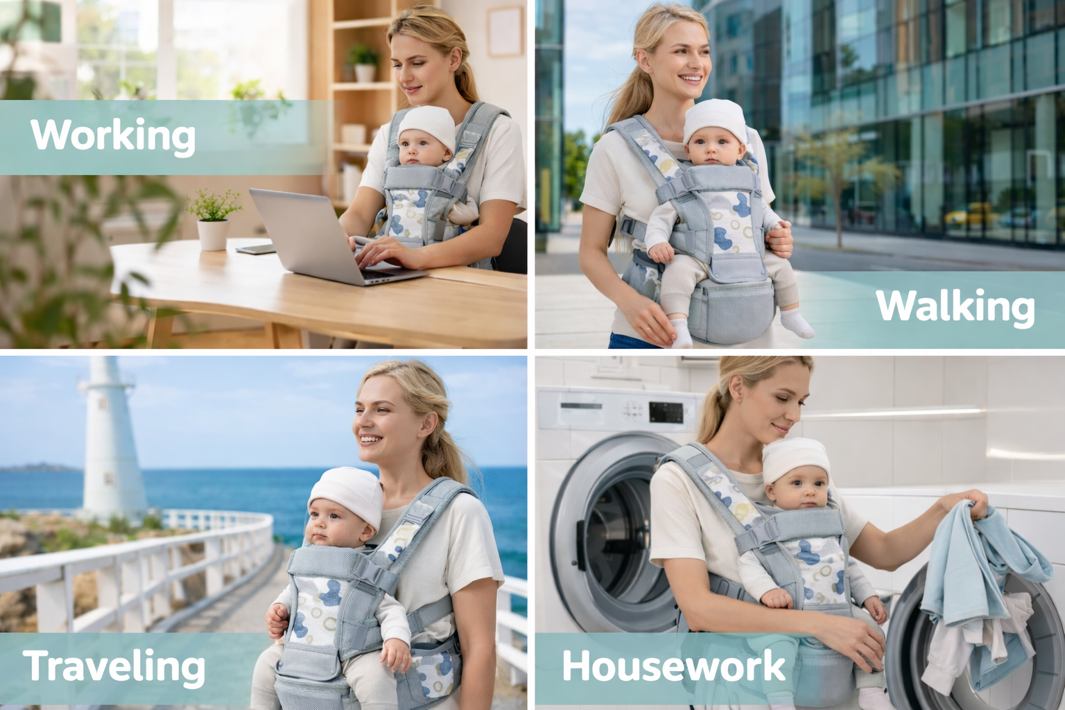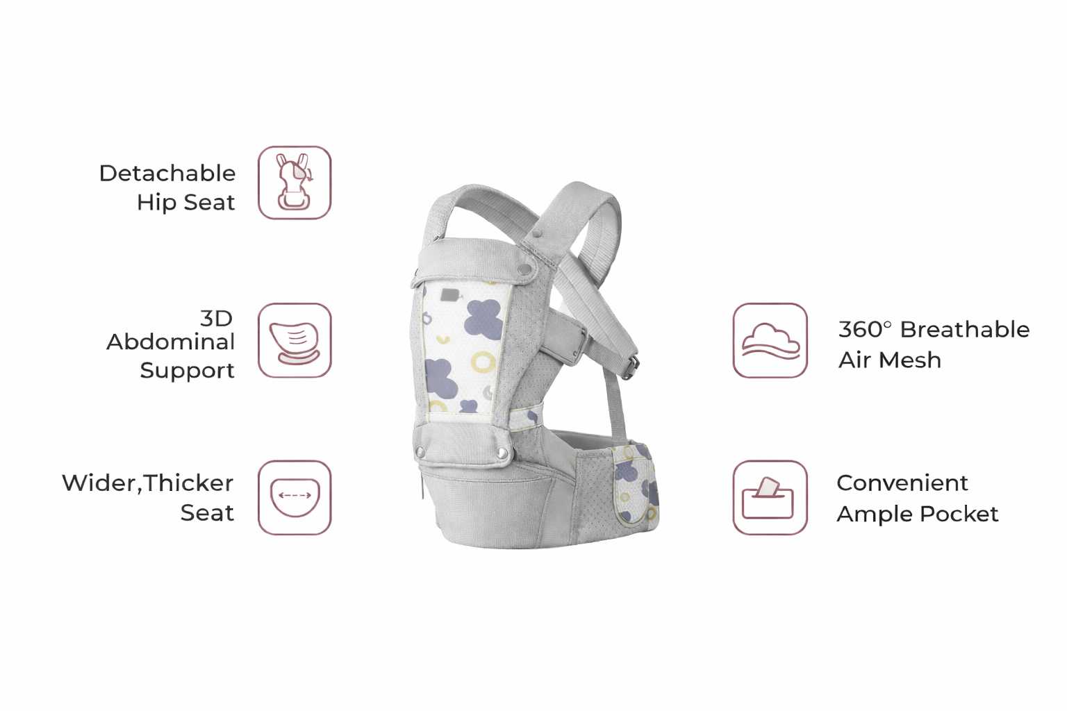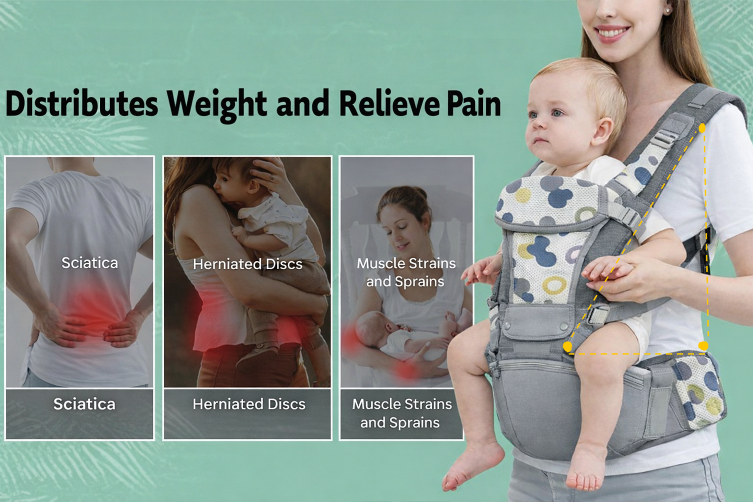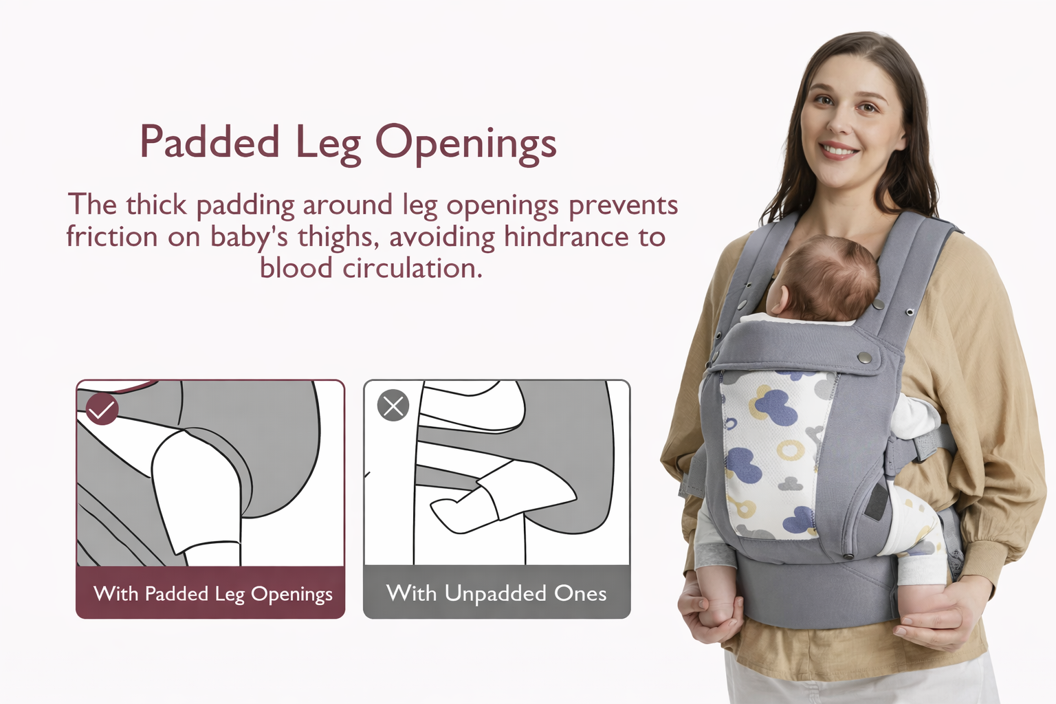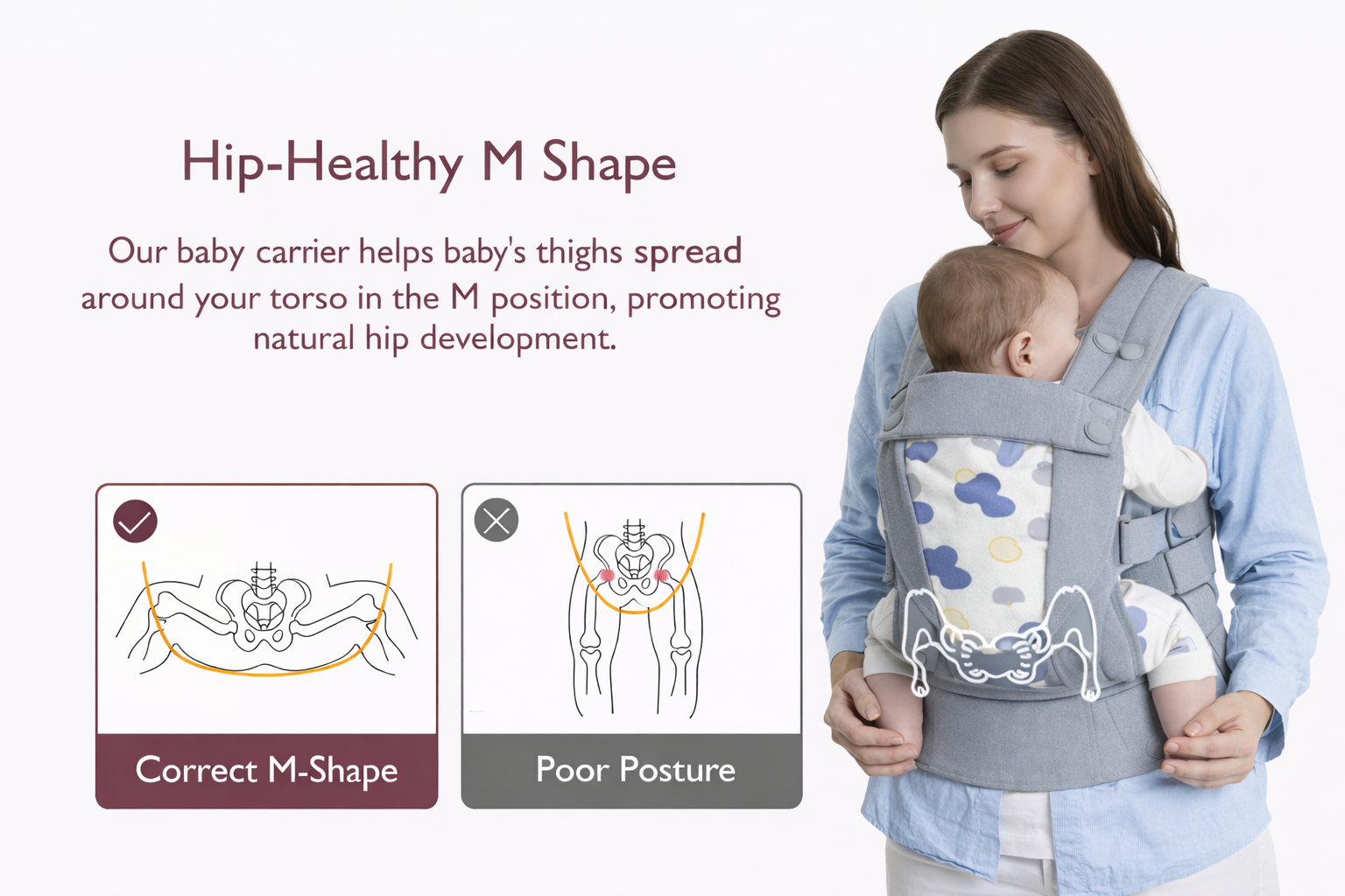 ✔️ Ergonomic Support for Baby & You. Encourages healthy hip and spine development while reducing pressure on your back. M-position seat, EVA lumbar panel, padded straps, and cushioned leg openings
